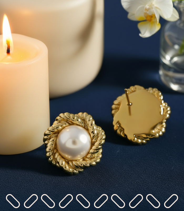 Radiating the warmth of the sun, these gold-plated earrings feature a lustrous central pearl embraced by a halo of twisted golden rays. Finished with a hypoallergenic jewelry coating for weightless comfort, they become effortless companions, carrying their solar elegance from casual settings to formal occasions.