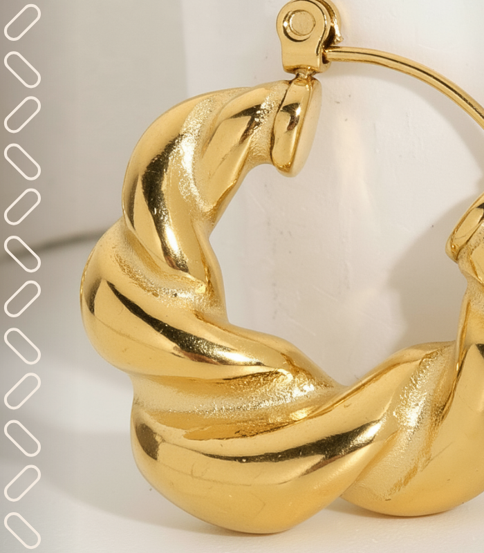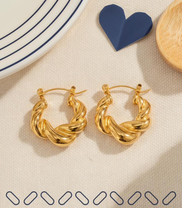 Sculpted with the graceful flow of winding paths, these gold-plated hoops display a mirrored interlaced design that reflects every glimmer of light. Hypoallergenic and easy to wear, this jewelry deliver refined daily elegance from workday focus to evening ease.