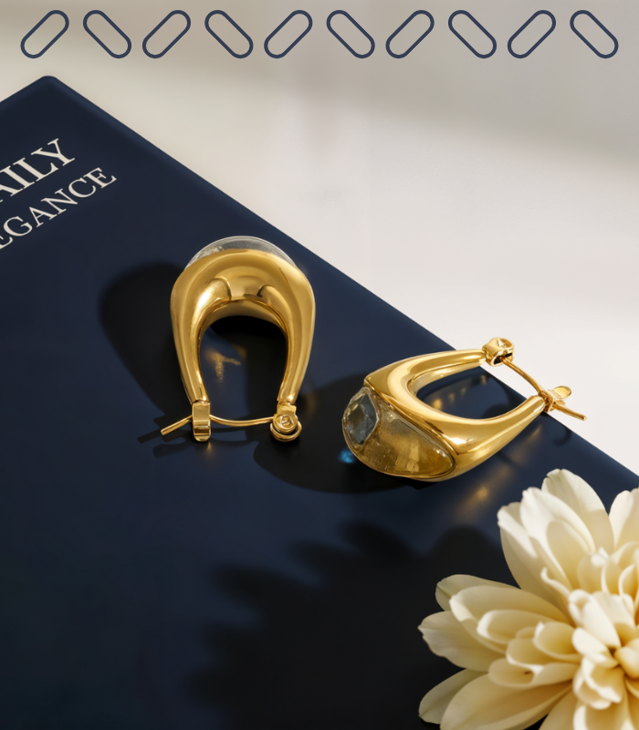 Mirroring the essence of light, these gold-plated earrings combine a golden silhouette with a translucent drop that captures pure clarity. Crafted as hypoallergenic jewelry for lasting comfort, their radiant design ensures timeless luminosity that moves effortlessly from casual chic to evening elegance.
