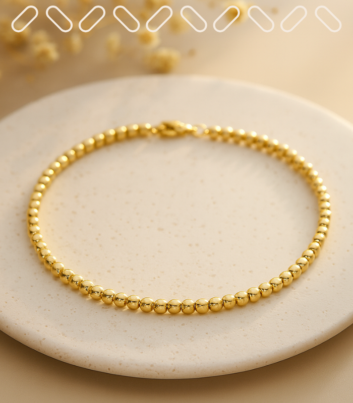 Evoking the sweetness of a golden harvest, this bracelet resembles a graceful grape branch wrapping the wrist in polished spheres. This gold-plated, hypoallergenic jewelry piece offers a textured richness that flows naturally from sunlight to starlight.