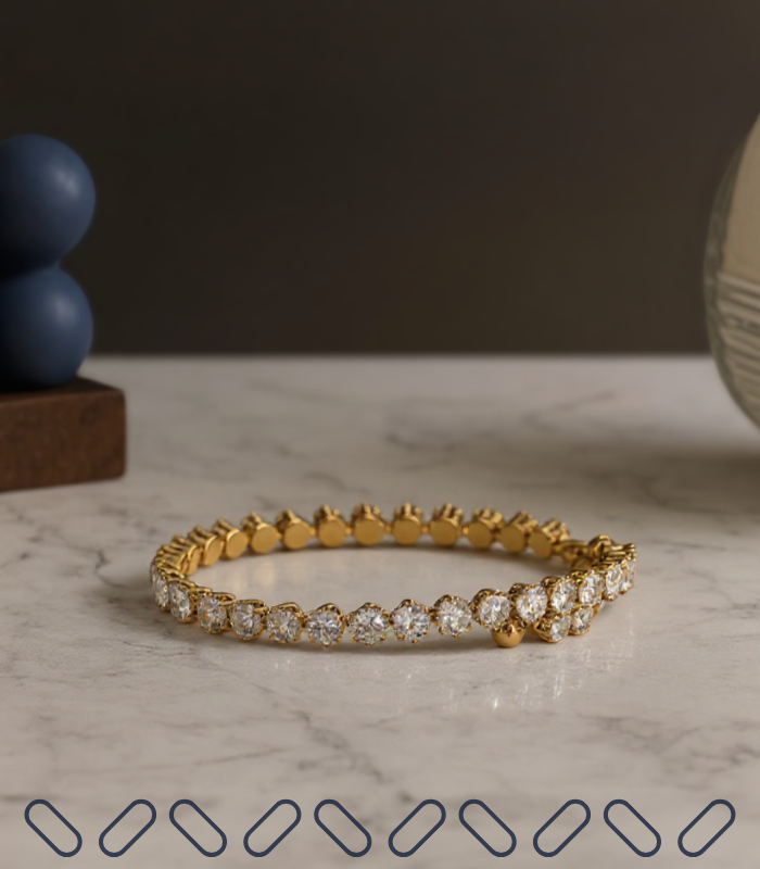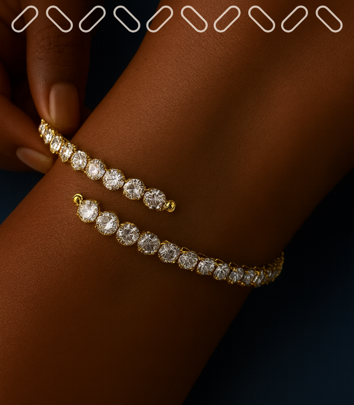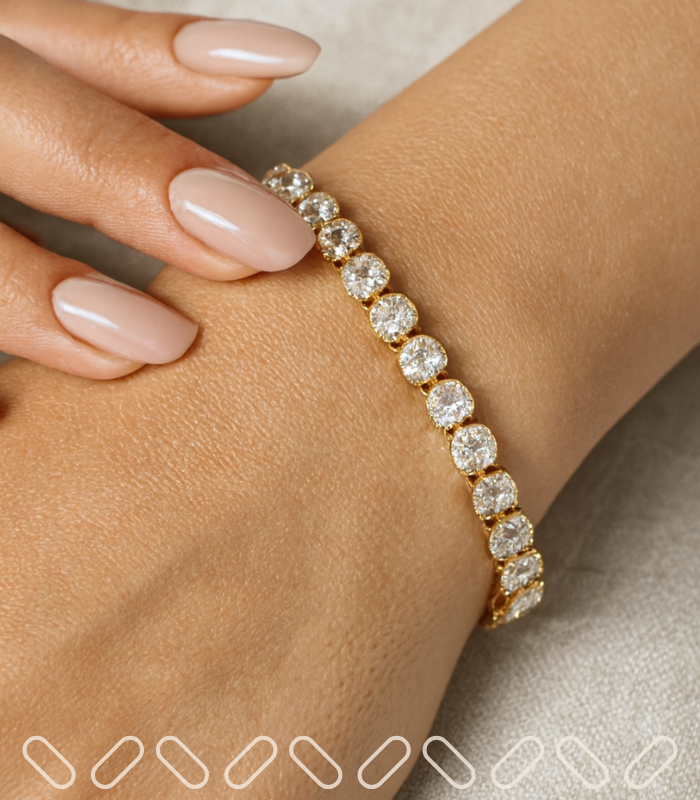 Reflecting the vibrant charm of a blossoming meadow, this gold-plated tennis bracelet adorns the wrist with a floral-inspired elegance. Crafted as hypoallergenic jewelry for enduring comfort, its clear stones capture every ray of light, sparkling beautifully from sunny afternoons to refined evening settings.
