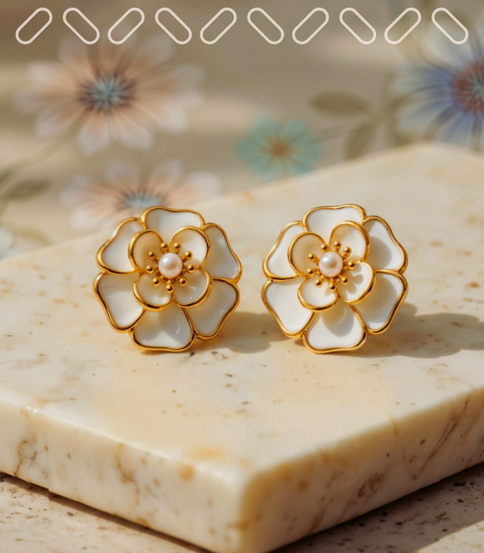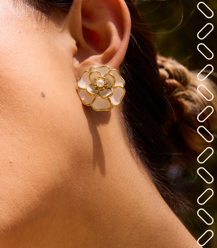 Evoking the vibrancy of flowers on a sunlit day, these gold-plated earrings capture a bloom fully open to the world, ready to radiate its natural beauty. Designed as hypoallergenic jewelry for daily elegance, this floral pair offers a fresh, timeless charm that complements any outfit from day to night.